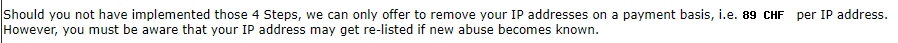 - Pagar para un delistado inmediato. El pago es de aproximadamente $100 dólares. (POR CADA IP BLOQUEADA).
